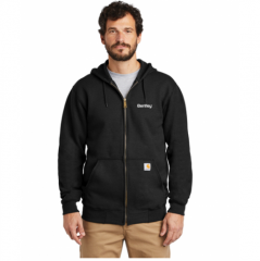 Carhartt's Midweight Hooded Zip-Front Sweatshirt brings considerable comfort to cool-weather worksites. 10.5-ounce, 50/50 cotton/poly blend or 59/41 cotton/poly blend (Black, Carbon Heather, Moss, New Navy)* 50/50 cotton/poly blend (Brite Lime, Brite Orange) 70/30 cotton/poly blend (Heather Grey) Attached three-piece hood with drawcord closure Full-length brass front zipper Two front hand warmer pockets Stretchable, spandex-reinforced, rib knit cuffs and waistband Carhartt-strong, triple-stitching on pocket Carhartt label sewn on left hand warmer pocket Loose fit